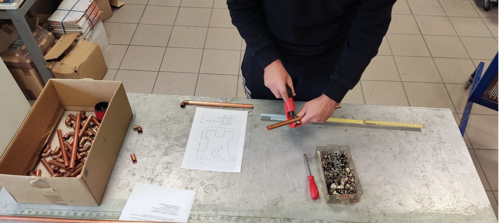 Οι μαθητές, κατόπιν οδηγιών, κλήθηκαν να εφαρμόσουν σε ειδικά ταμπλό, βάσει σχεδίου, εφαρμογές με χαλκοσωλήνες, με υλικά και εργαλεία του Ε.Ι.Α.Χ.. Οι εφαρμογές ήταν δύο τύπων, με χρονική διάρκεια η κάθε μία 40 λεπτά, και έγιναν με τις οδηγίες και την επίβλεψή του Ε.Ι.Α.Χ