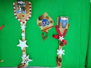 Στο bazaar που διοργανώνει το 6ο ΕΚ Κορυδαλλού στον πολυχώρο του ΕΠΑΛ Κορυδαλλού παρουσιάζονται δημιουργίες (ημερολόγια –  ρόδια – κουτάλες – κάρτες γούρια – πήλινα στολίδια…)  των μαθητών/τριών της ειδικότητας Βρεφονηπιοκομίας.
